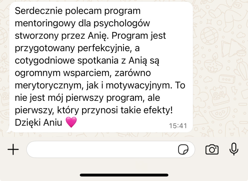 Nie musisz błądzić tak jak ja. Pokażę Ci, jak połączyć psychologiczną misję z biznesową skutecznością. Pomogę Ci wyjść ze szklanego sufitu godzinowych stawek i zbudować markę, która da Ci prawdziwą wolność finansową i czasową. Twoja wiedza ma ogromną wartość – czas, aby świat dowiedział się o niej na Twoich zasadach.